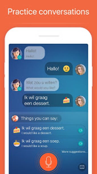 Mondly لديه نهج فريد لتعلم اللغات يجعله مختلفًا عن الدورات التقليدية للغات. يبدأ بمحادثة أساسية بين شخصين، وتبدأ سريعًا في حفظ الكلمات الأساسية واستخدامها لبناء الجمل والعبارات، وفي نهاية الوحدة التعليمية التي تستغرق 45 دقيقة، يمكنك إعادة بناء تلك المحادثة بصوتك الخاص. هذه الطريقة فعالة لتعلم العبارات الهولندية. مع تقنية التعرف على الكلام الطبيعي وخوارزميات التكرار المتباعدة المتطورة، التطبيق مثالي لتعلم اللغات.